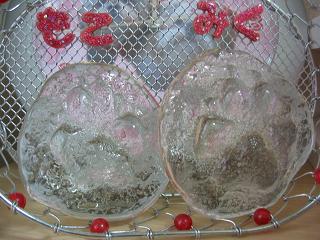 製作したもこみくの足型のガラス細工です