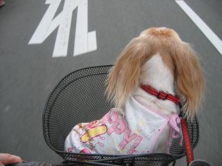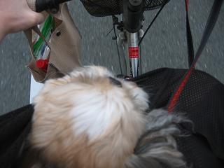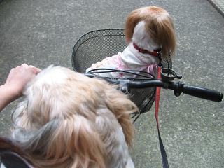 もこが自転車のカゴ、みくはスリングで私の胸元にいます