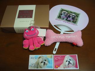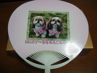 名刺と一緒に、団扇やもこみくのおもちゃ、そして私にお菓子まで