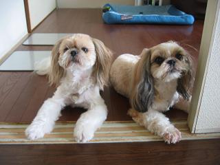 先月も、トリミングに行く前に、2人で敷居のところで寝てたよね