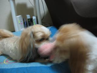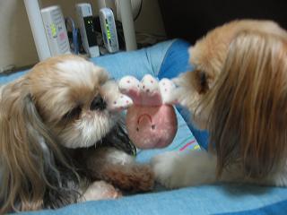 しばらく2人で、取り合いっこをしていましたが・・・