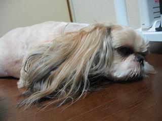 エアコンの効いた部屋で、満足そうに眠るもこみくでした