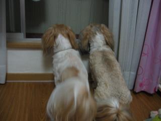 ちゃんの気配がなくなっても、しばらくベランダの方を見つめてた2人でした