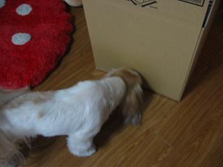 止めた途端、ダンボールの近くに行くもこ