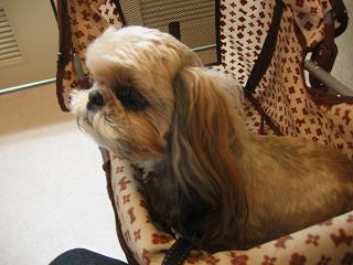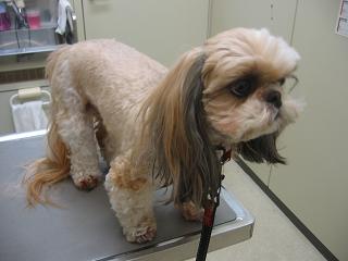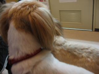 もこは看護師さんにしっぽを振ったりして、余裕がまだあります