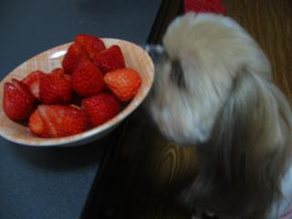 いちごを切ったら、もらえるって思ってるみたい