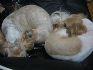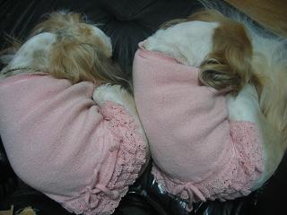 ヘンな体勢になりながらも、膝の上で寝続ける2人でした