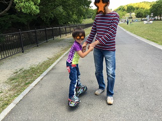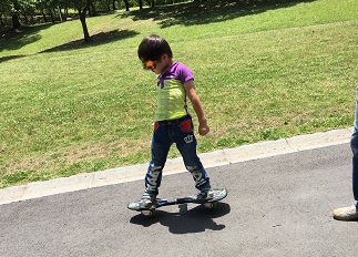むぅくん キャスターボードを練習中