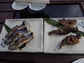 釣ったマスは、その場で調理してもらえて食べられます
