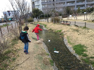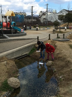 小川や噴水のある公園で、お船を作って遊びましょ~と