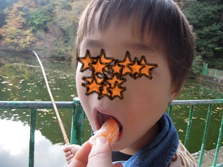 釣りをしてる間に、私は1つみかんを獲ってきました