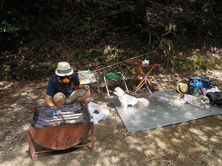 なかなか火をおこせず悪戦苦闘していたら、隣でBBQをしていた方が