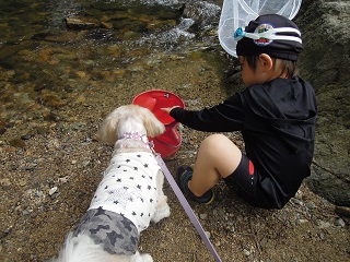 むぅくんは、早速着替えて川へ