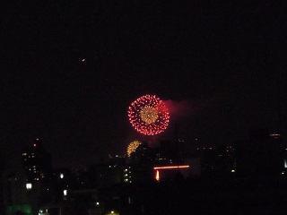 結局、玄関の前の廊下から小さい花火を見ました