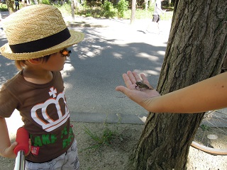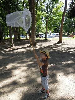 「虫つかまえる~♪」と、張り切ってアミ持ってきてますが、