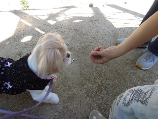 もんちゃんをお膝に乗せて抱っこしたい♪と言い