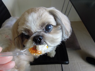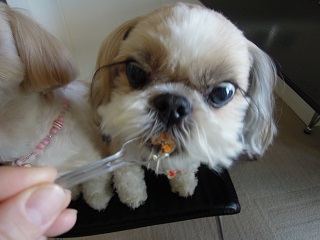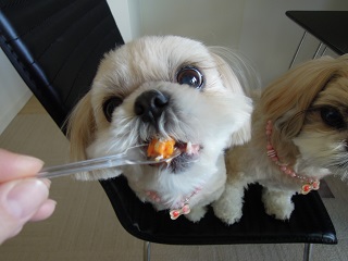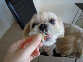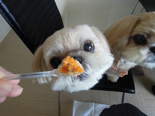 私たちの夕食後、もこみくにも晩ごはんをあげて、翌日に