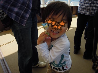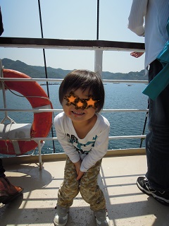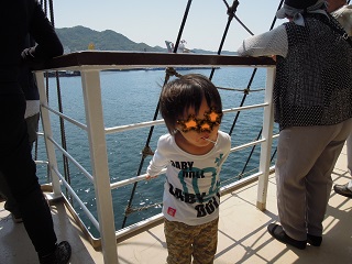 乗る前に、子どもに飴を配ってくれて、むぅくん大喜び~