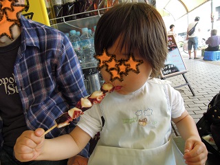 たこの串刺しが食べたいと言って、たこも~