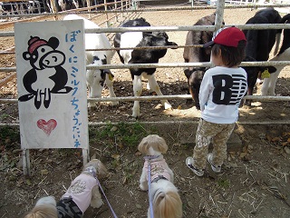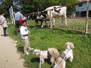 仔牛を見て、めっちゃテンション上がったもんちゃん