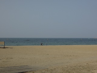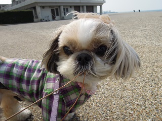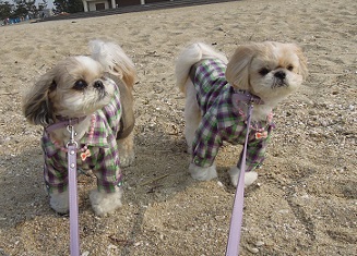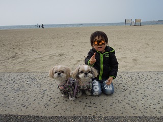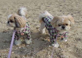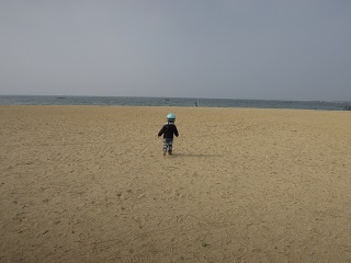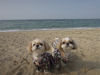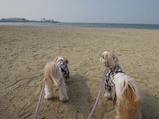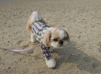 もこみく、水の気配がイヤなのかそそくさと砂浜退散でした