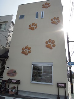 壁に肉球が描かれてますよ~