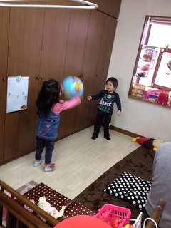ちょうどお昼寝から起きたいっちゃんと一緒に遊ばせて