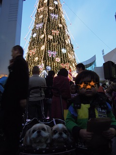 ツリーの前でライブが始まると、もこみくもむぅくんも