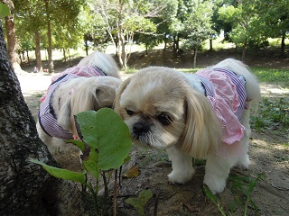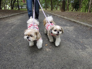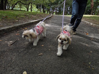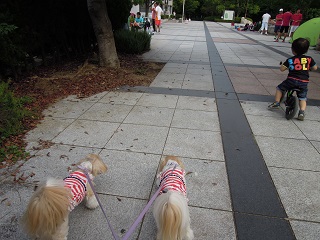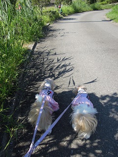 むぅくんが楽しく遊んでいるのを少し見て、もこみくとお散歩へ