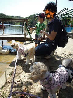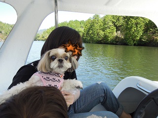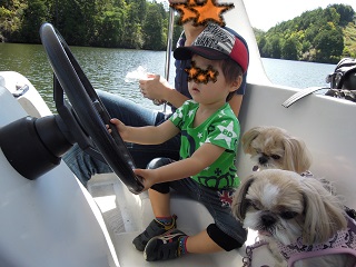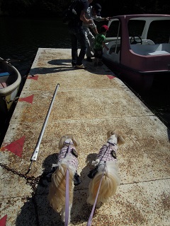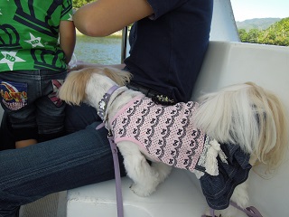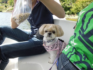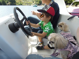 着いてから、なんとダーリンが「ここのボートはわんこも乗れる」と