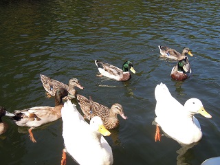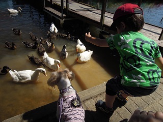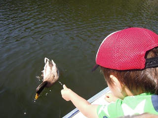 ボートからアヒルやカモにえさをあげることができます