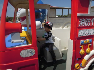 むぅくん、乗り物が向こうに見えてるのが気になって、