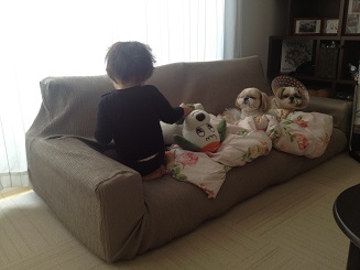 ソファーカバーは、今までのものを使いまわしです