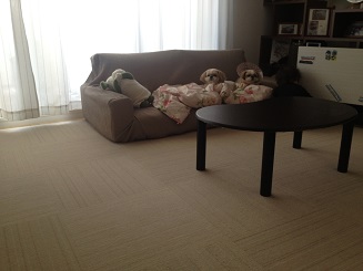 リビング~廊下を、タイルカーペットで敷き詰めることに