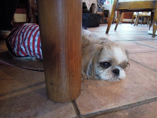 もこみくは、テーブル下でお利口さんに待っててくれましたよん