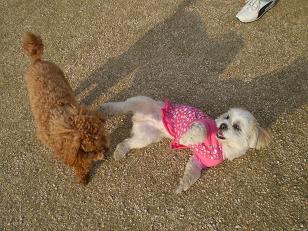 トイプーのリクくんと、シーズー×マルチーズのMixのラブちゃん