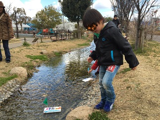 小川や噴水のある公園で、お船を作って遊びましょ~と