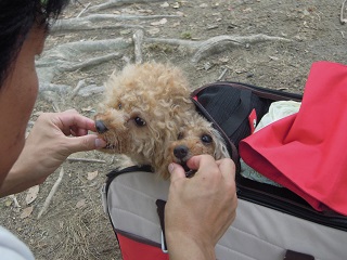 むぅくんが渡してあげると、もこはちょっと遊んでました