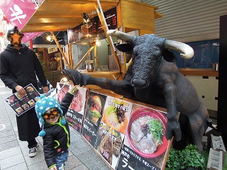 そして、海鮮市場でハンバーグセットを食べる坊ちゃん(笑)